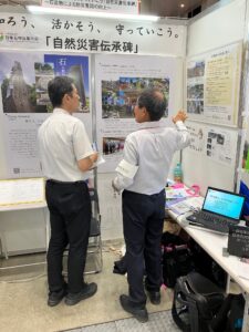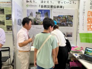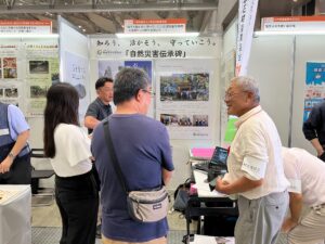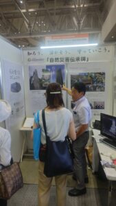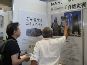 ブースには一般消費者、各団体の方が訪れ、災害に対する危機意識の高さを感じました。伝承碑をテーマに出展している団体が他に26団体あり、それら団体との情報交換を通じて石材業の団体がどの様に防災と繋がっているか、石産協のPRにもなりました。