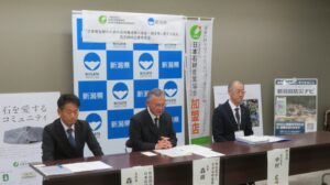 この後は記者説明会があり、石産協活動実績を森田会長、協定締結目的やメリットについては新潟県防災局防災企画課長の堀川氏よりご説明をいただきました。