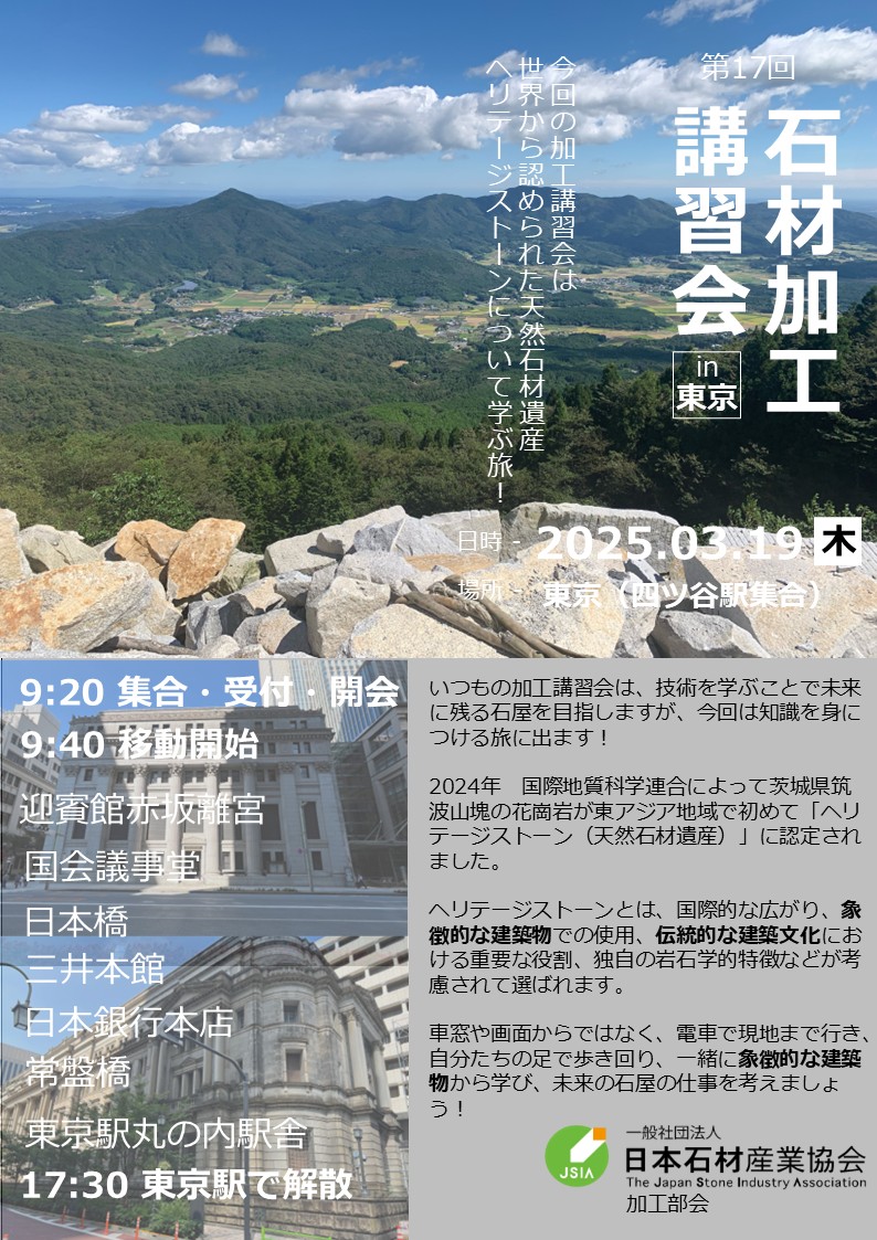 2026.3.19(木)開催 加工部会【講習会参加費】見る!石材加工講習会
